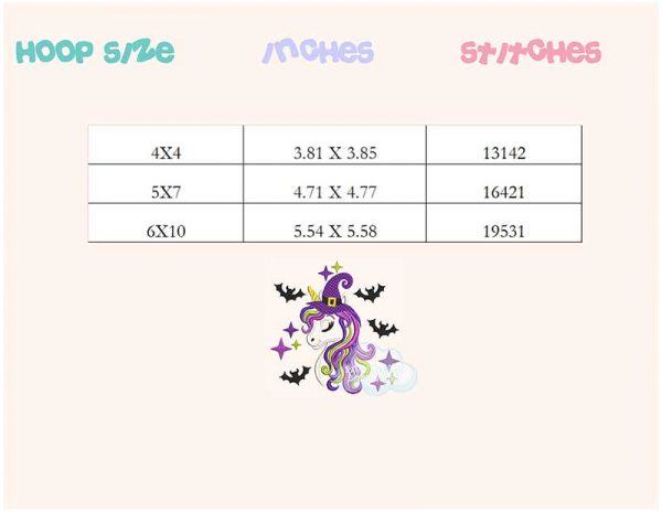 Be the first to review “Cute Halloween witch unicorn embroidery design”