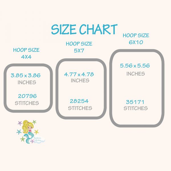 Dive into the magic of the sea with our Mermaid digital machine embroidery design. Adorned with starfish, it’s a perfect choice for creating enchanting summer beach-themed projects for girls.