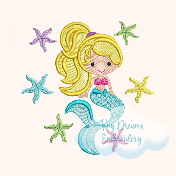 Mermaid Digital Machine Embroidery Design Starfish Embroidery Design Girl Embroidery Design Sea Embroidery Design Summer Beach Embroidery