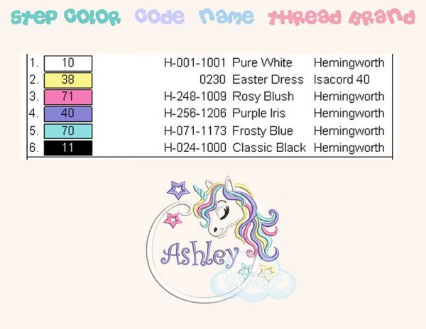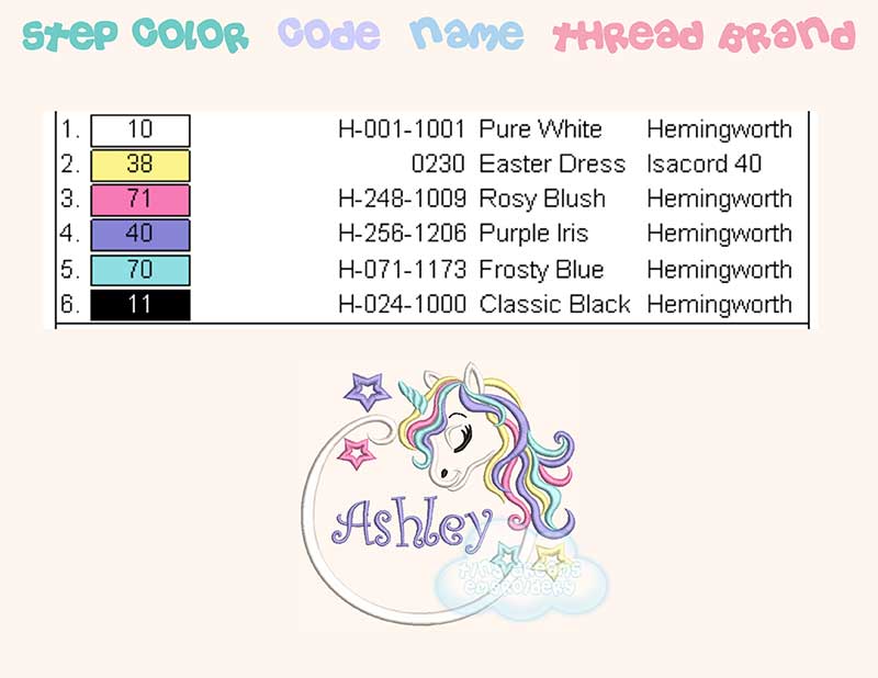Cute pastel unicorn monogram/name (name/monogram/font not included) embroidery design