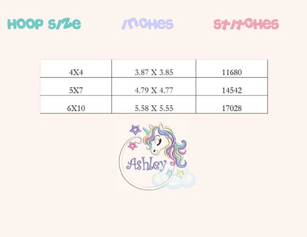 Be the first to review “Cute pastel unicorn monogram/name (name/monogram/font not included) embroidery design”