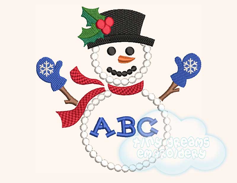 Cute snowman monogram/name (name/monogram/font not included) embroidery design