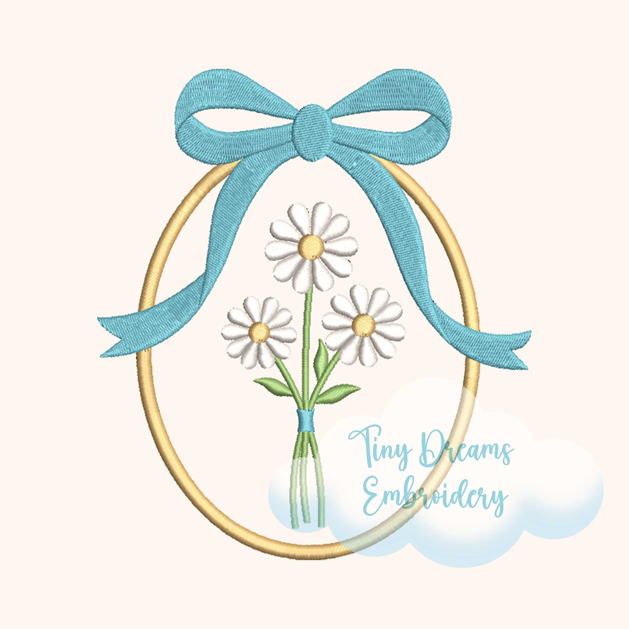 Daisy Spring Flowers Embroidery Design Cameo Bow Machine Embroidery (3 sizes) (Digital Download)