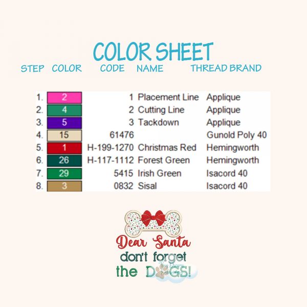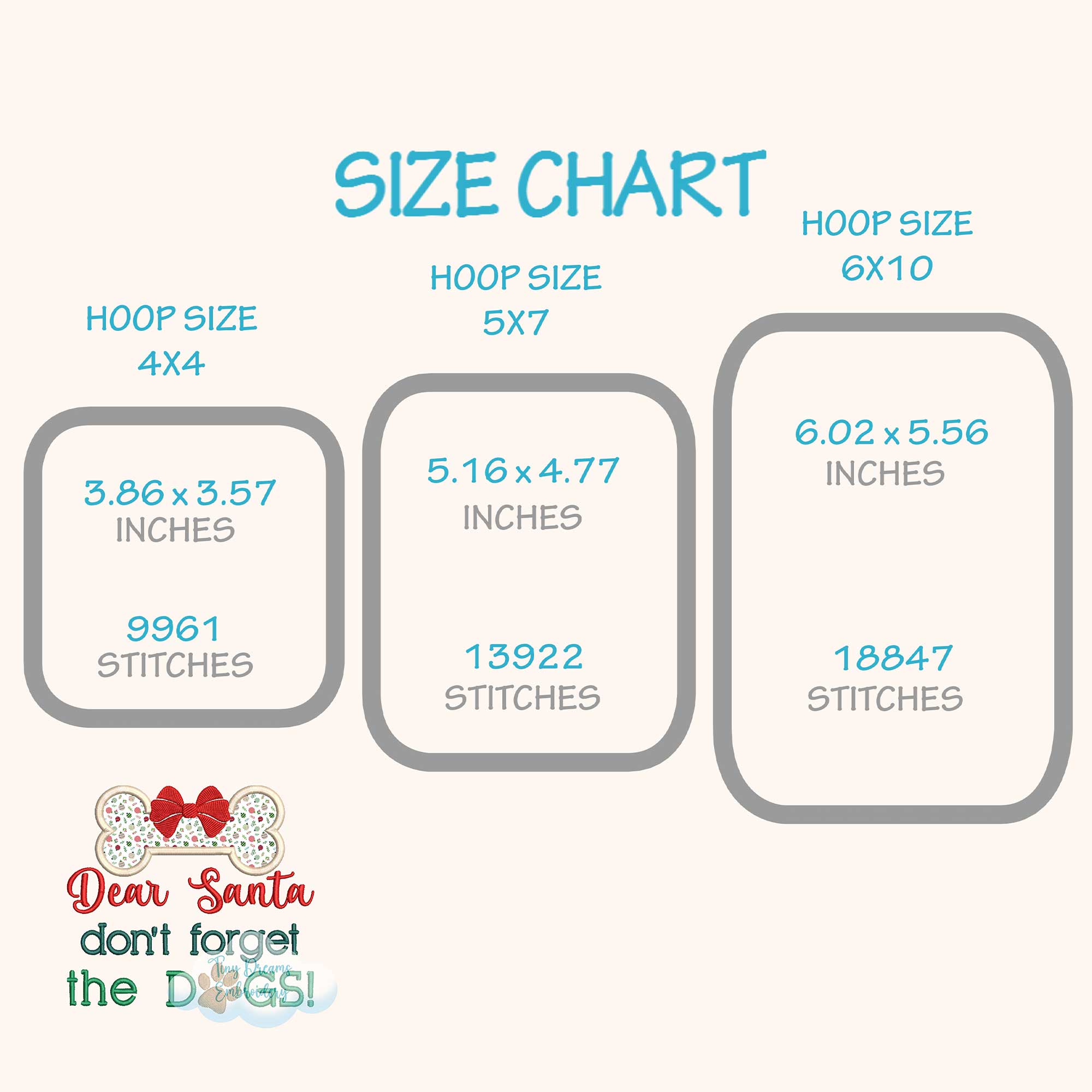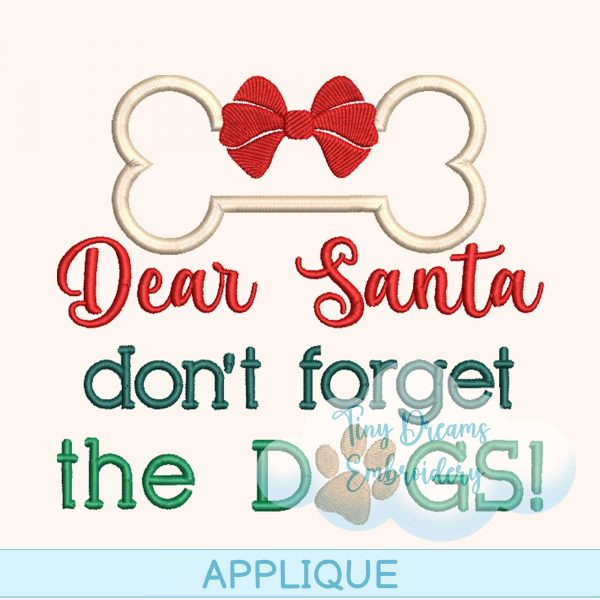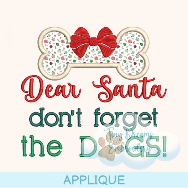 This Dear Santa Applique digital machine embroidery design features a festive dog paw print, perfect for celebrating the holiday season. Add a playful and charming touch to your Christmas projects with this adorable design.