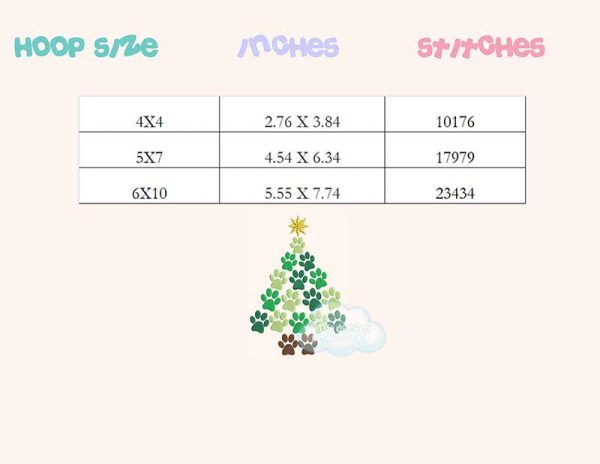 Be the first to review “Dog paw print Christmas tree embroidery design”