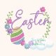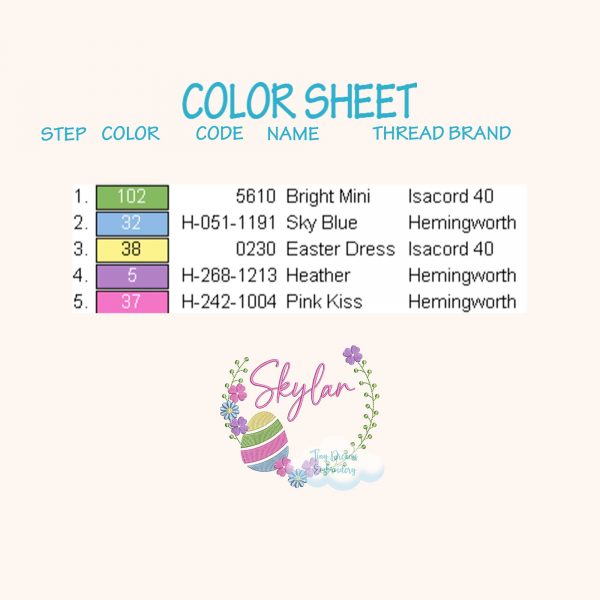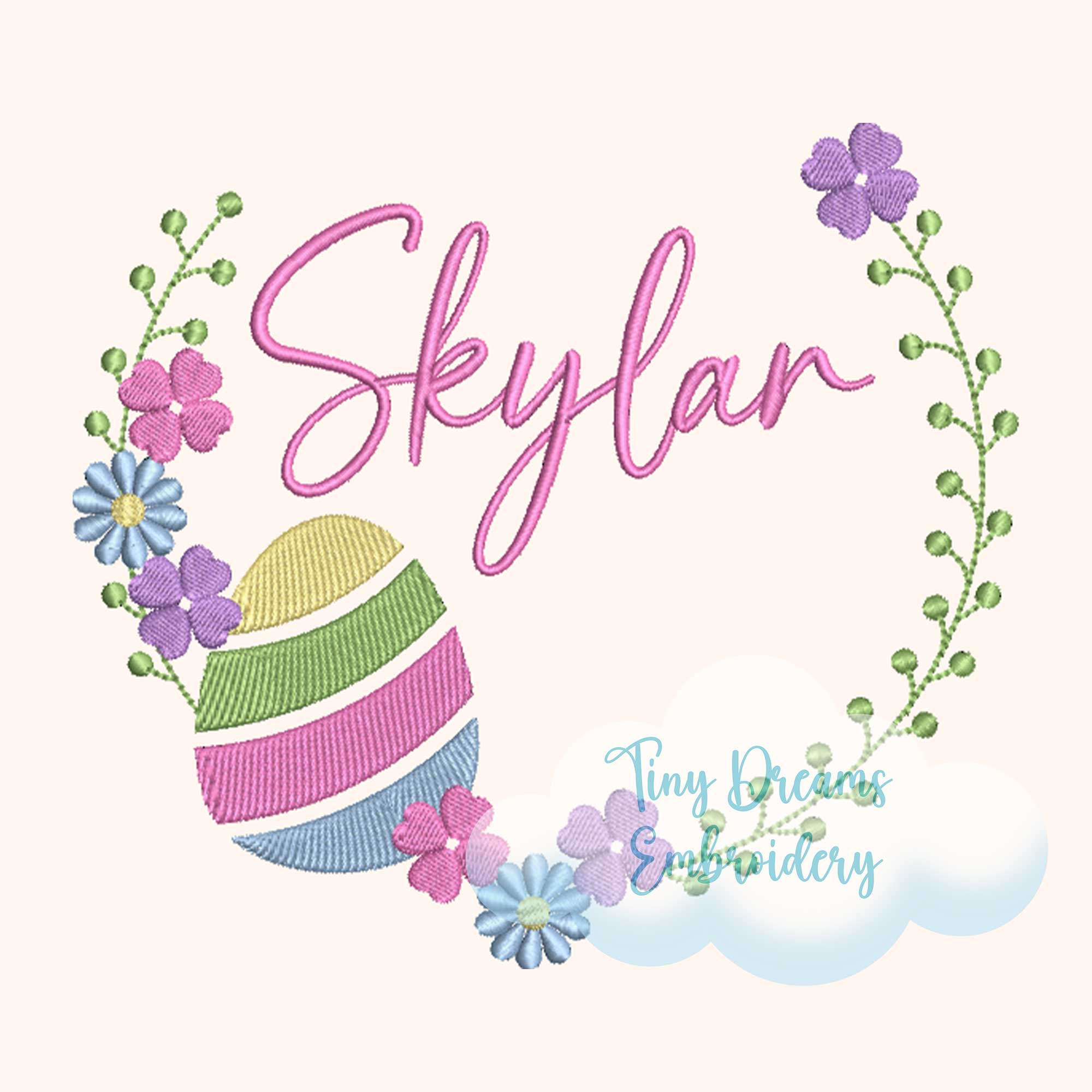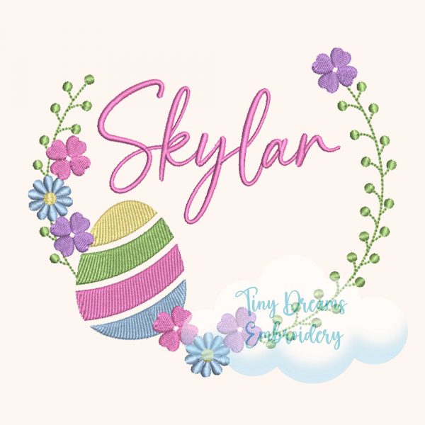 Create a vibrant digital machine embroidery design featuring Easter eggs intertwined with floral elements and personalized monogramming, perfect for adorning spring-themed items with a charming wreath monogram embroidery.