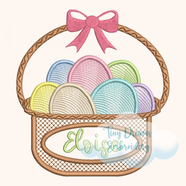 Elevate your Easter celebrations with our exquisite digital machine embroidery design. This personalized creation features a beautifully crafted Easter egg basket motif, complete with a custom monogram that adds a touch of elegance to your holiday decor.