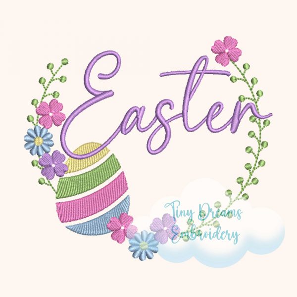 Design a delightful digital machine embroidery capturing the essence of Easter with a festive wreath adorned with springtime florals and charming Easter egg accents, perfect for adding a touch of joy to baby girl and boy embroidery projects.