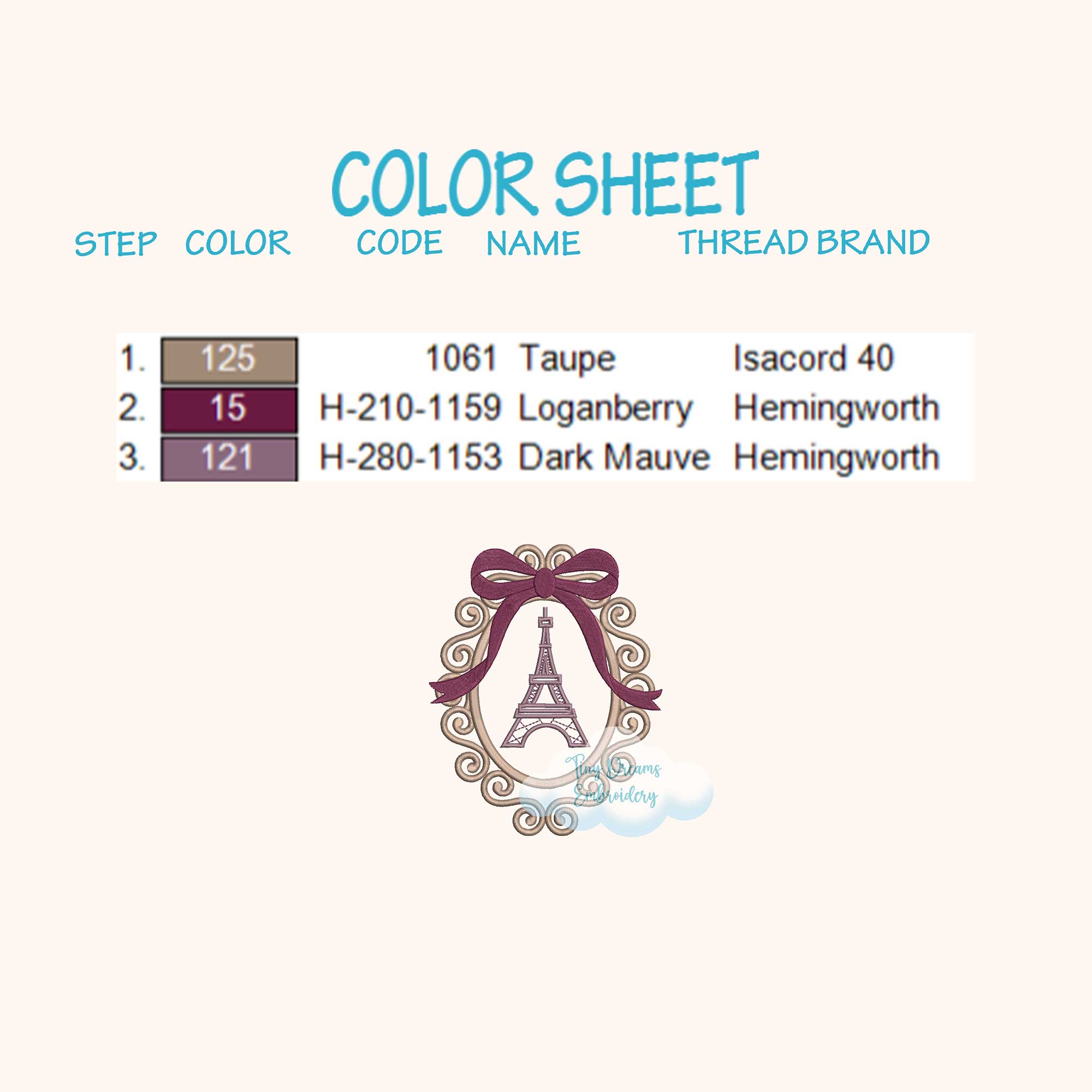 Eiffel Tower Cameo embroidery design with a delicate border and bow, perfect for reading pillows and Paris-themed projects. Add a touch of French elegance to your creations with this charming design 🗼📖🧵✨