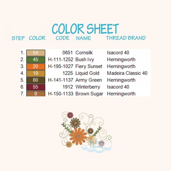 Create beautiful fall season projects with our Autumn Harvest Embroidery Design, featuring vibrant daisies and floral patterns. This digital machine embroidery design captures the essence of fall with its intricate details and seasonal charm.