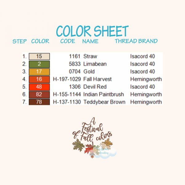 Embrace the vibrant spirit of the fall season with our digital machine embroidery design, celebrating the rich hues of autumn leaves. This design captures the essence of the autumn festival, infusing your creations with the warmth and beauty of this cherished time of year.