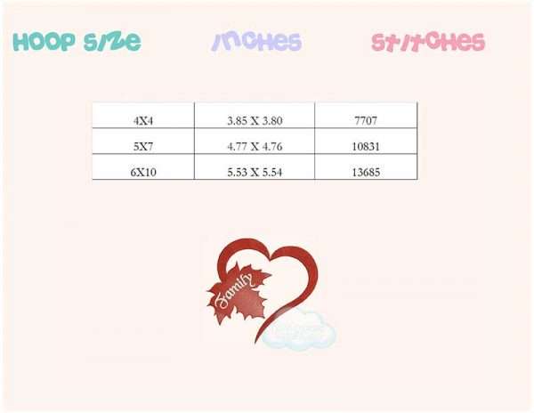 Be the first to review “Family autumn leaf with heart embroidery design”