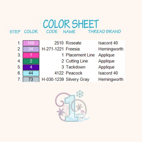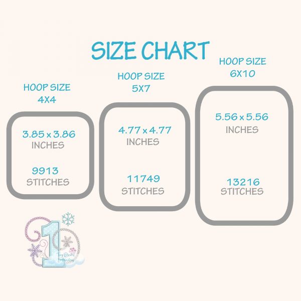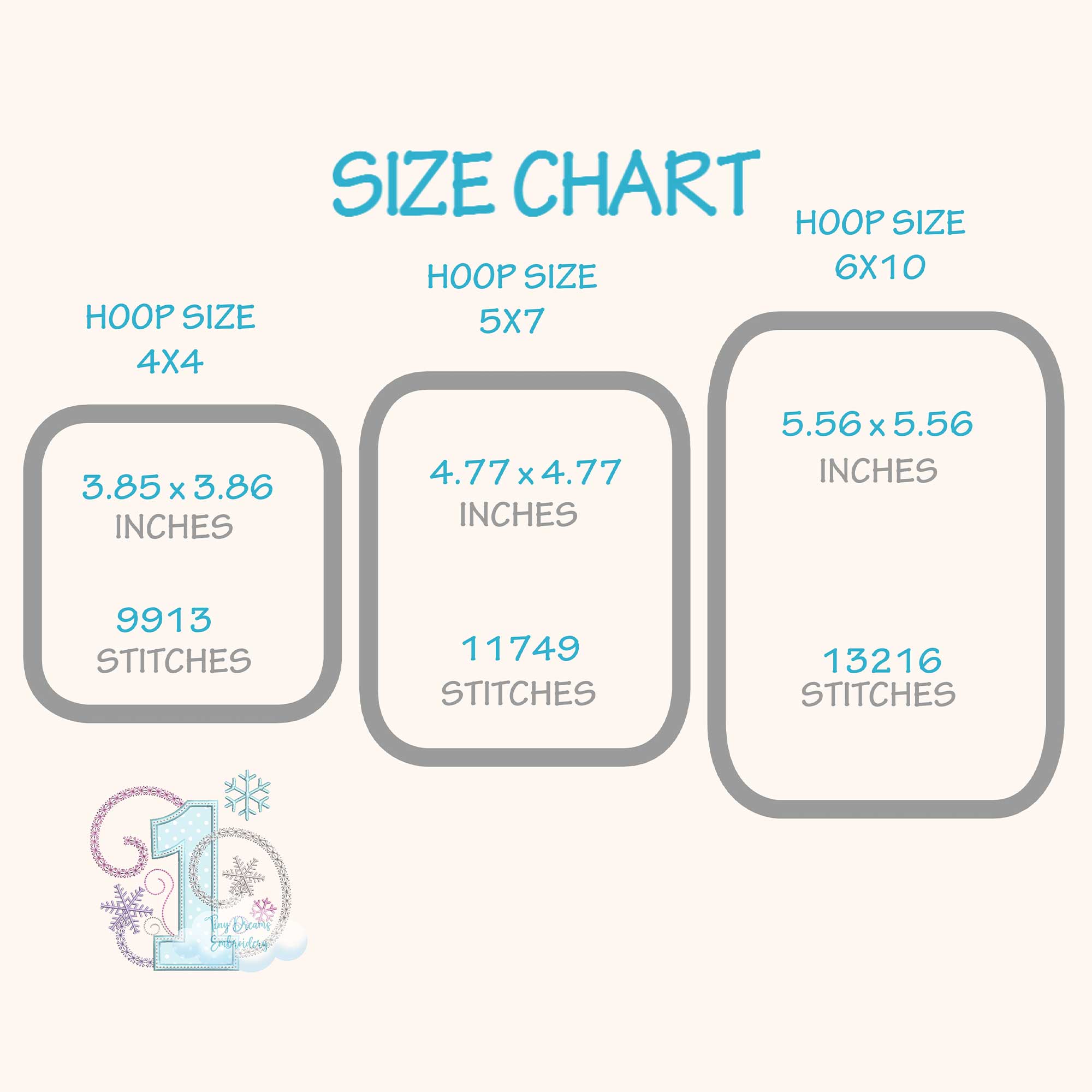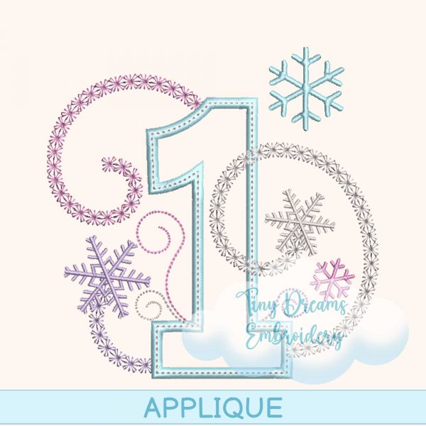 Design a First Birthday Applique Digital Machine Embroidery reflecting a Frozen winter, adorned with Snowflake Birthday Applique Embroidery.