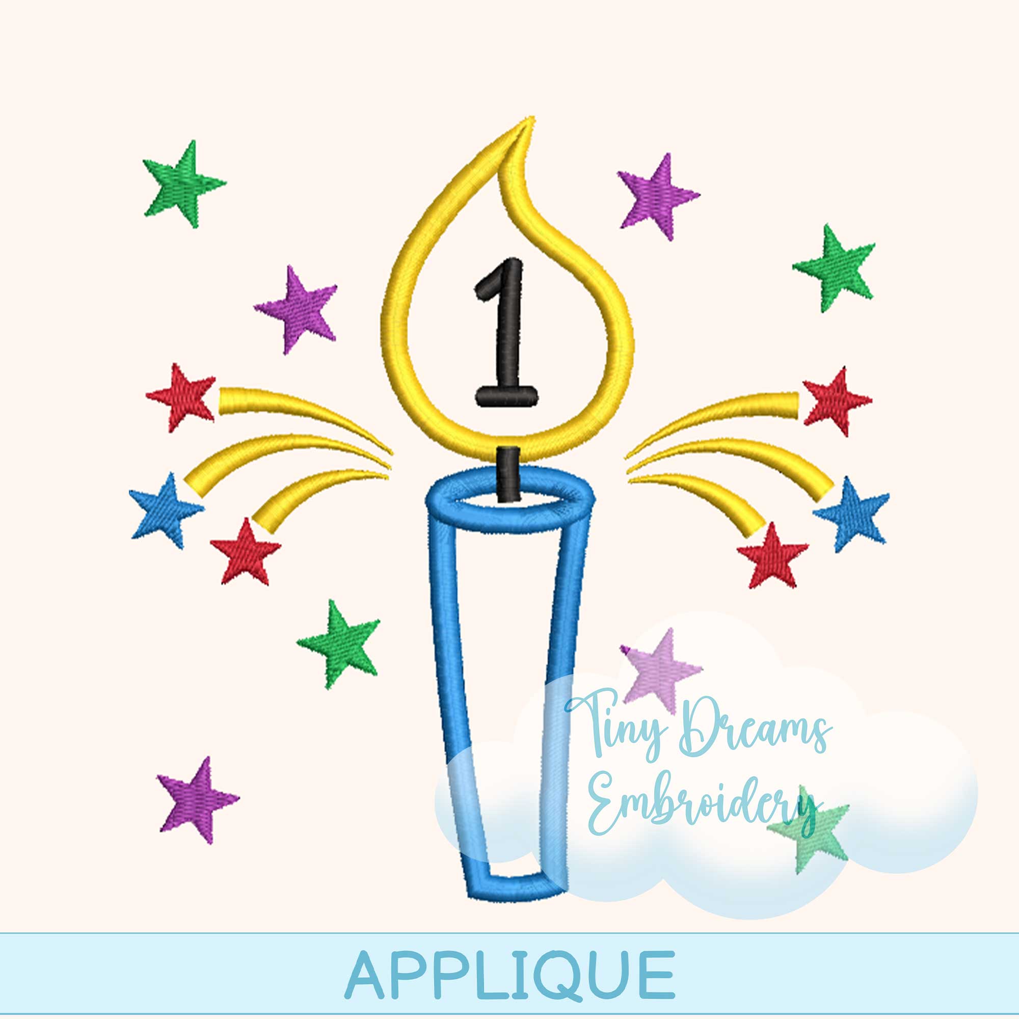 Celebrate a baby’s first birthday with a charming digital machine embroidery design featuring a candle and stars, suitable for boys or girls. This adorable applique design captures the joy of this milestone occasion, perfect for creating personalized keepsakes or decorations.