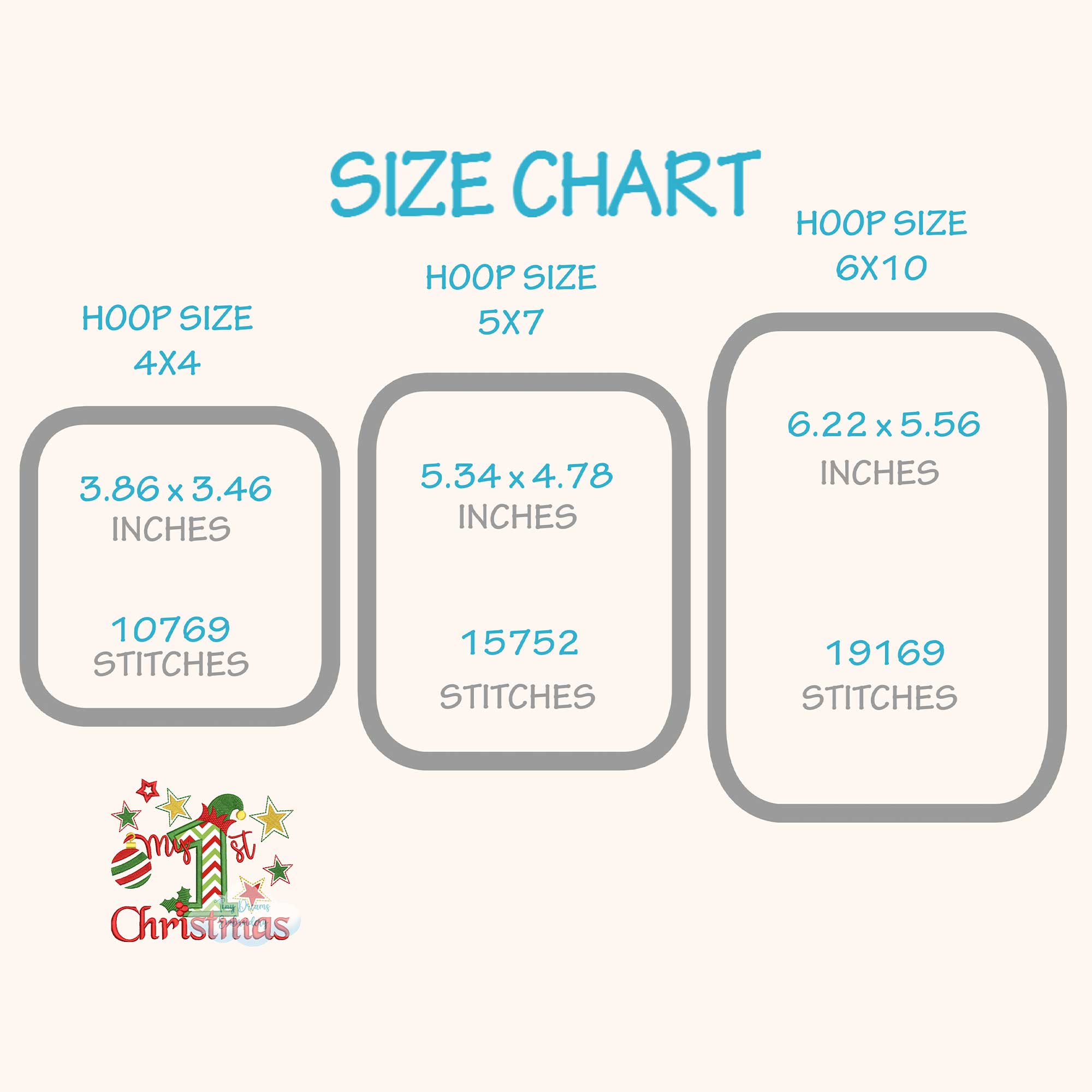 Capture the magic of your baby’s first Christmas with our ‘First Christmas Applique’ digital embroidery design. This enchanting pattern showcases a delightful ornament with a shining Christmas star, adding a special touch to your keepsakes. Commemorate this joyous occasion with a design that celebrates the wonder of the season
