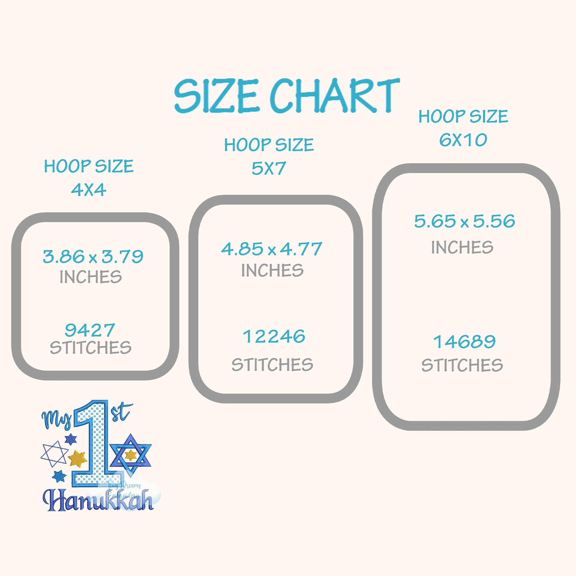 Embrace the joy of your baby’s First Hanukkah with our delightful applique embroidery design. Featuring the iconic David Star, it adds a special touch to celebrate this meaningful occasion for both baby girls and boys.