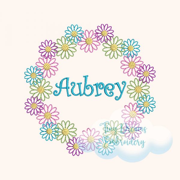 Create personalized spring designs with our floral outline digital machine embroidery featuring monogrammed daisy patterns. Customize your projects with daisy wreaths and custom name embroidery.