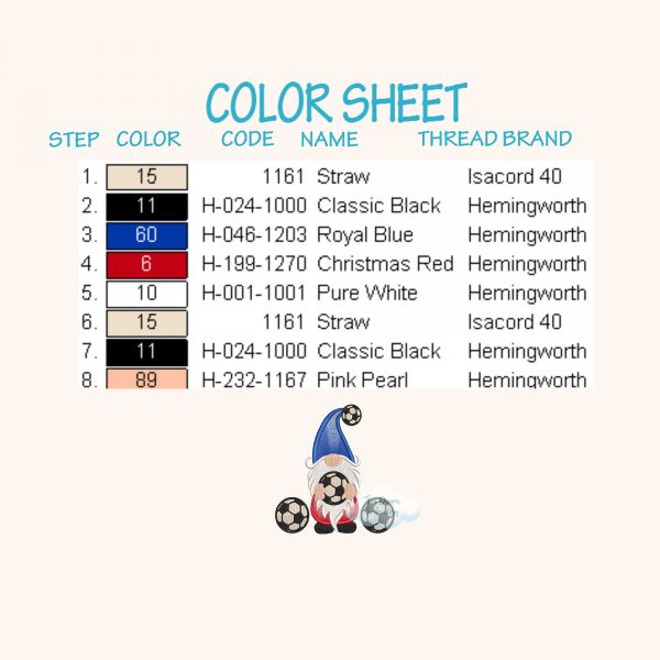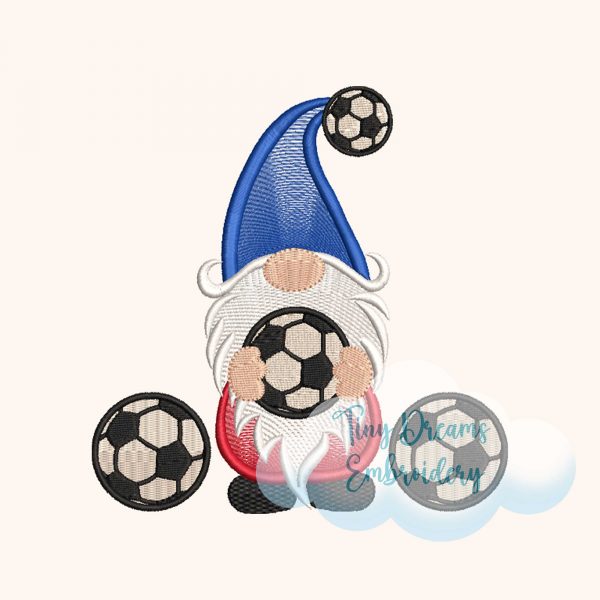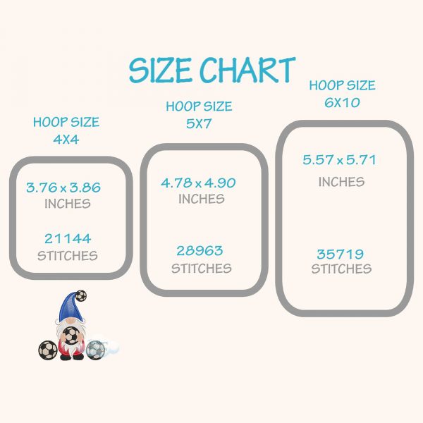 Elevate your sports-themed projects with our dynamic sport gnome digital machine embroidery design. This spirited gnome embroidery design features a football and soccer ball motif, making it a perfect addition to your sport-inspired creations.
