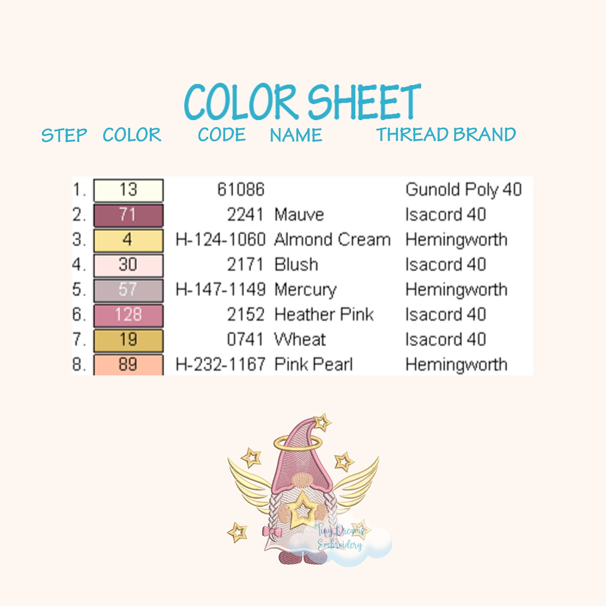 This adorable Girl Angel Gnome digital machine embroidery design captures the magic of angels and stars. Perfect for adding a whimsical touch to any project with its charming gnome and celestial details.