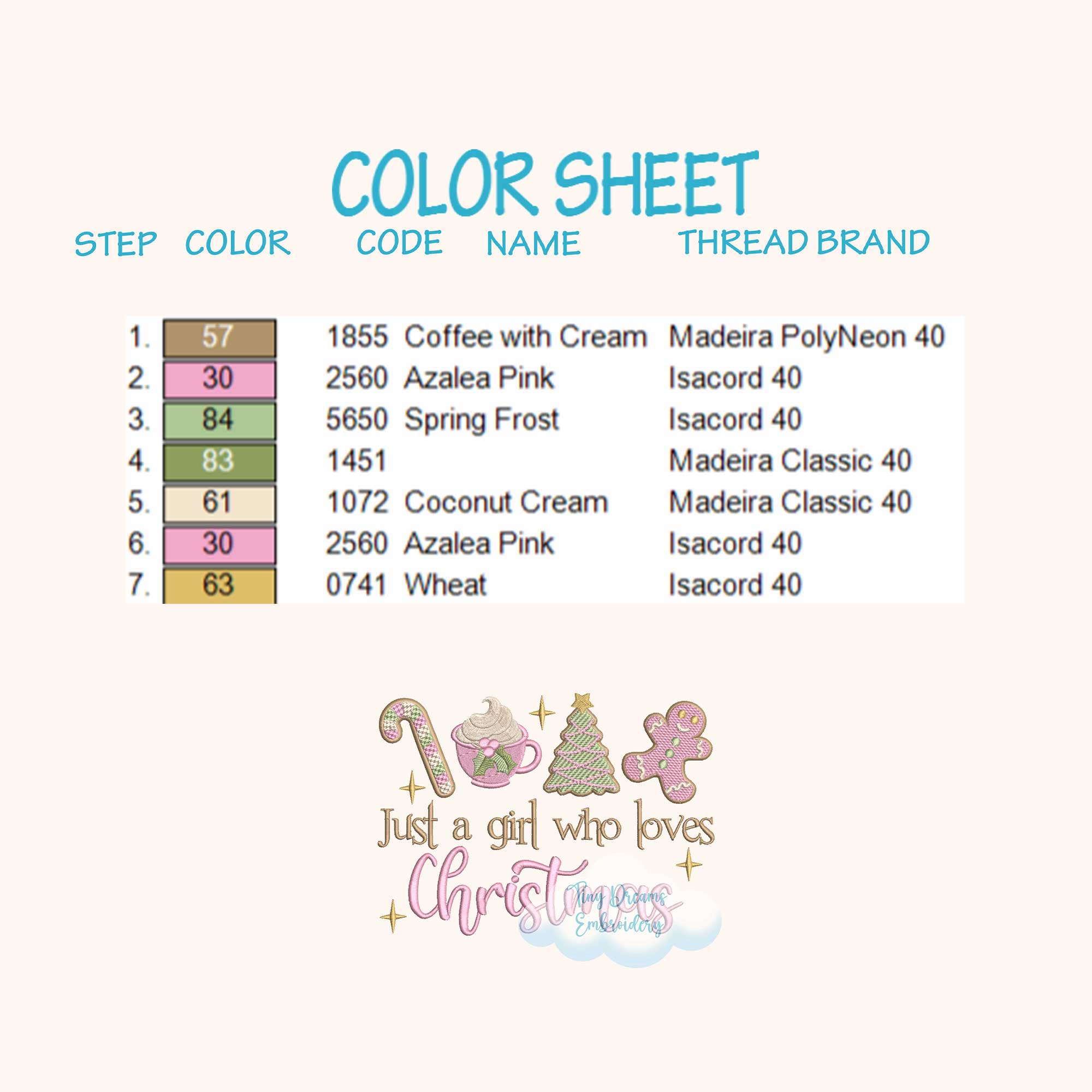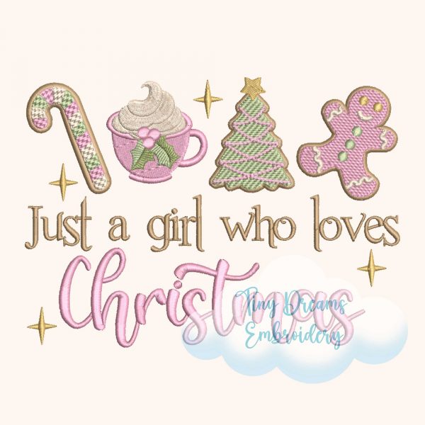 Girl Loves Christmas Embroidery Design: Candy Cane, Gingerbread Cookie, Hot Cocoa, Christmas Coffee (Digital Download)