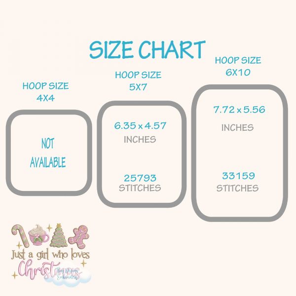 Be the first to review “Girl Loves Christmas Embroidery Design: Candy Cane, Gingerbread Cookie, Hot Cocoa, Christmas Coffee (Digital Download)”