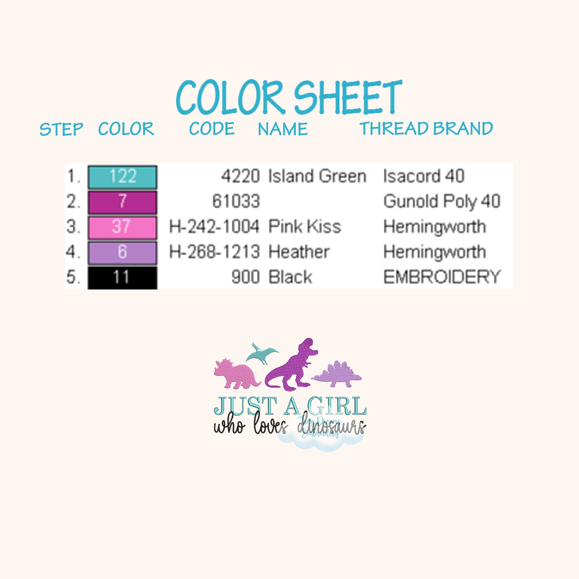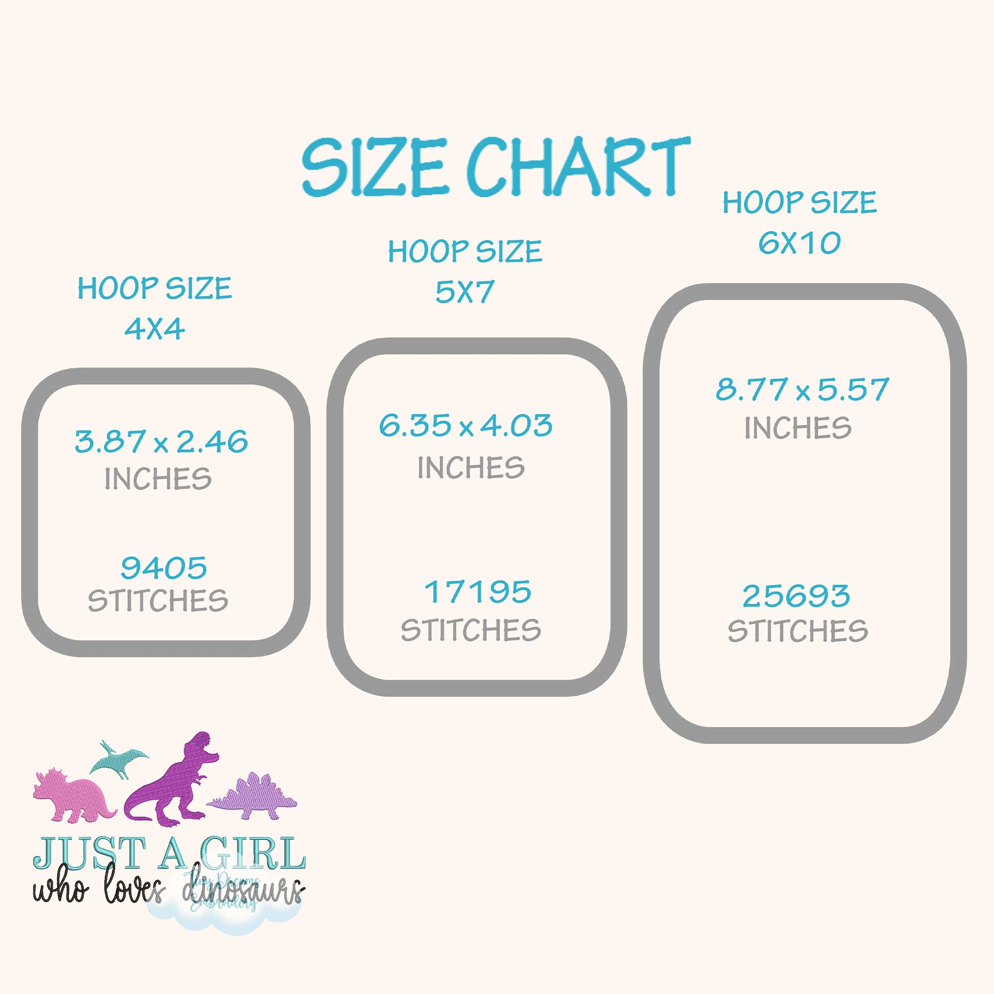 Celebrate a girl’s love for dinosaurs with this adorable digital embroidery design. Perfect for baby girl projects, it combines playful dinos with heartwarming details!
