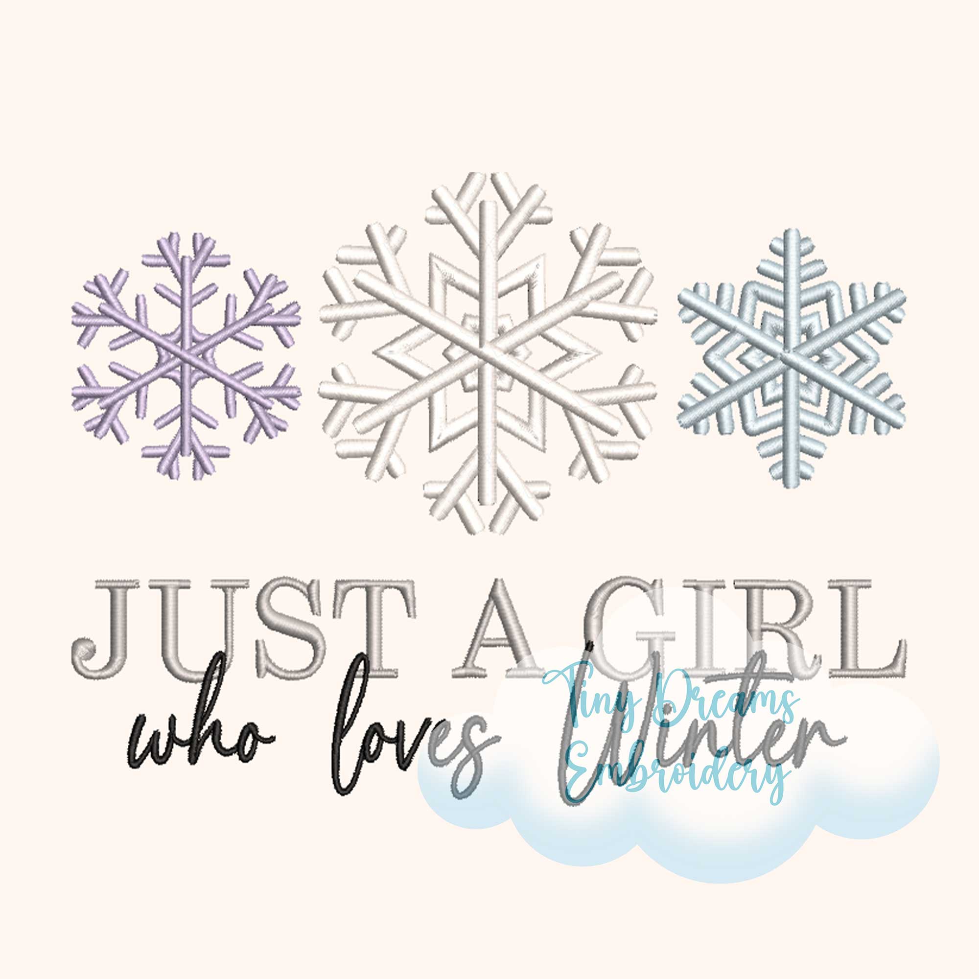 This Girl Loves Winter digital machine embroidery design features delicate snowflakes and a charming winter girl theme. It’s perfect for celebrating the beauty of winter in your seasonal embroidery projects.