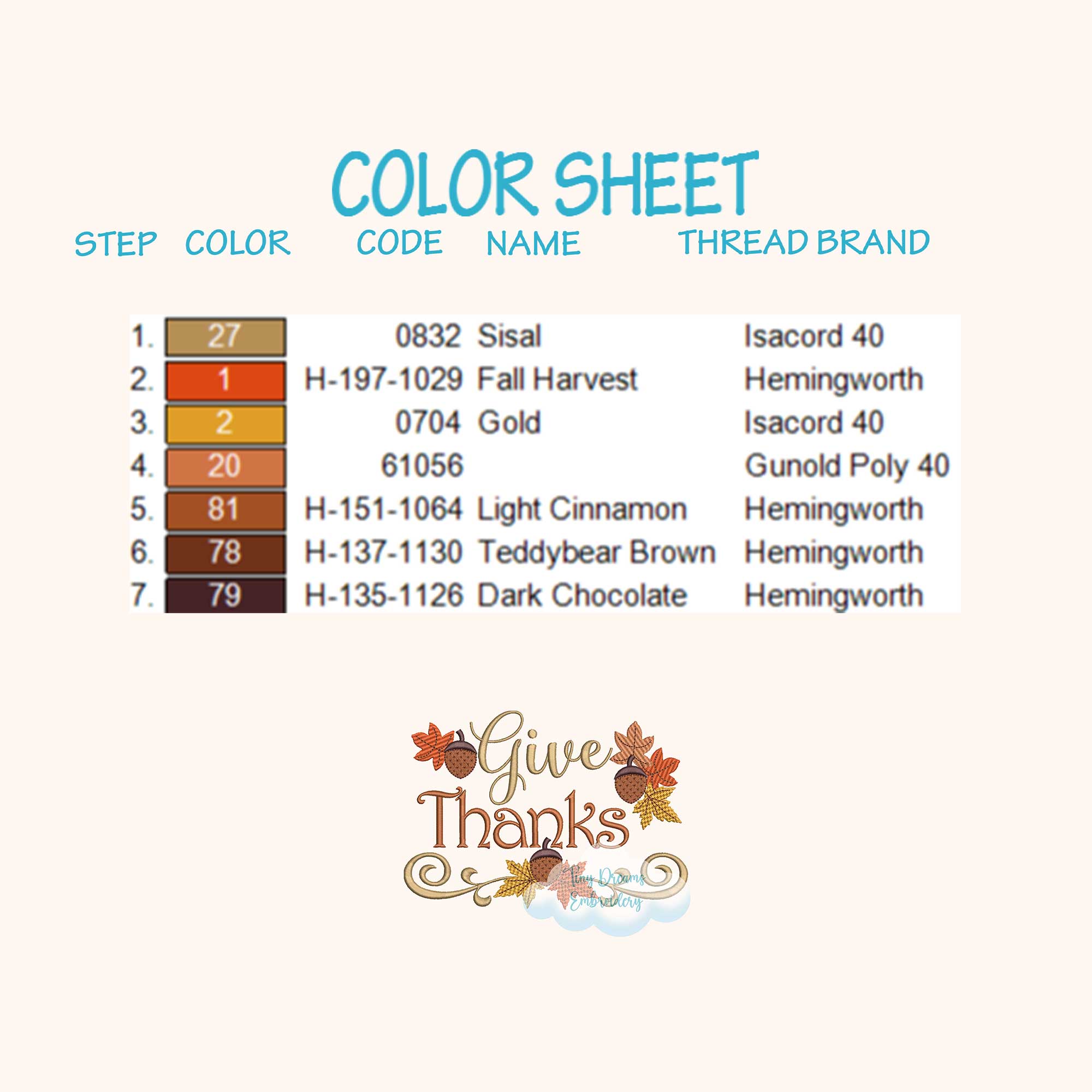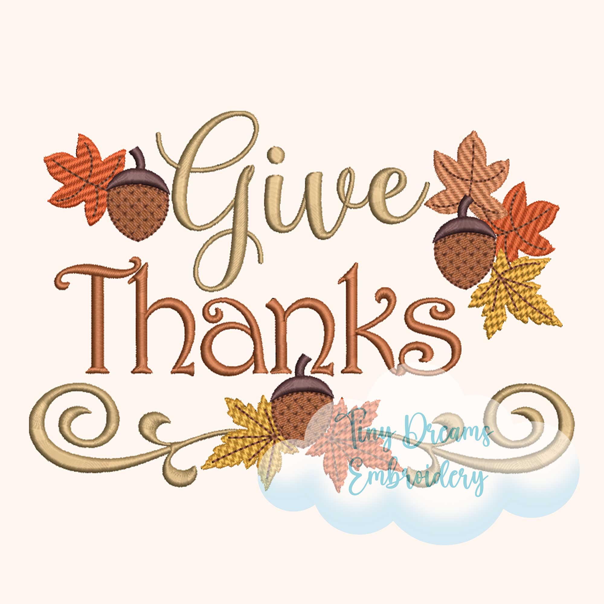 Give Thanks Digital Machine Embroidery Design Thanksgiving Design Embroidery Fall Leaf Embroidery Design Acorn Fall Autumn Embroidery Design