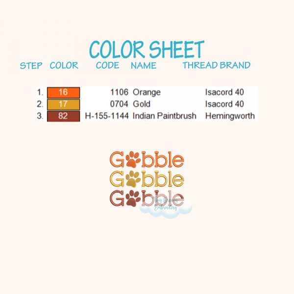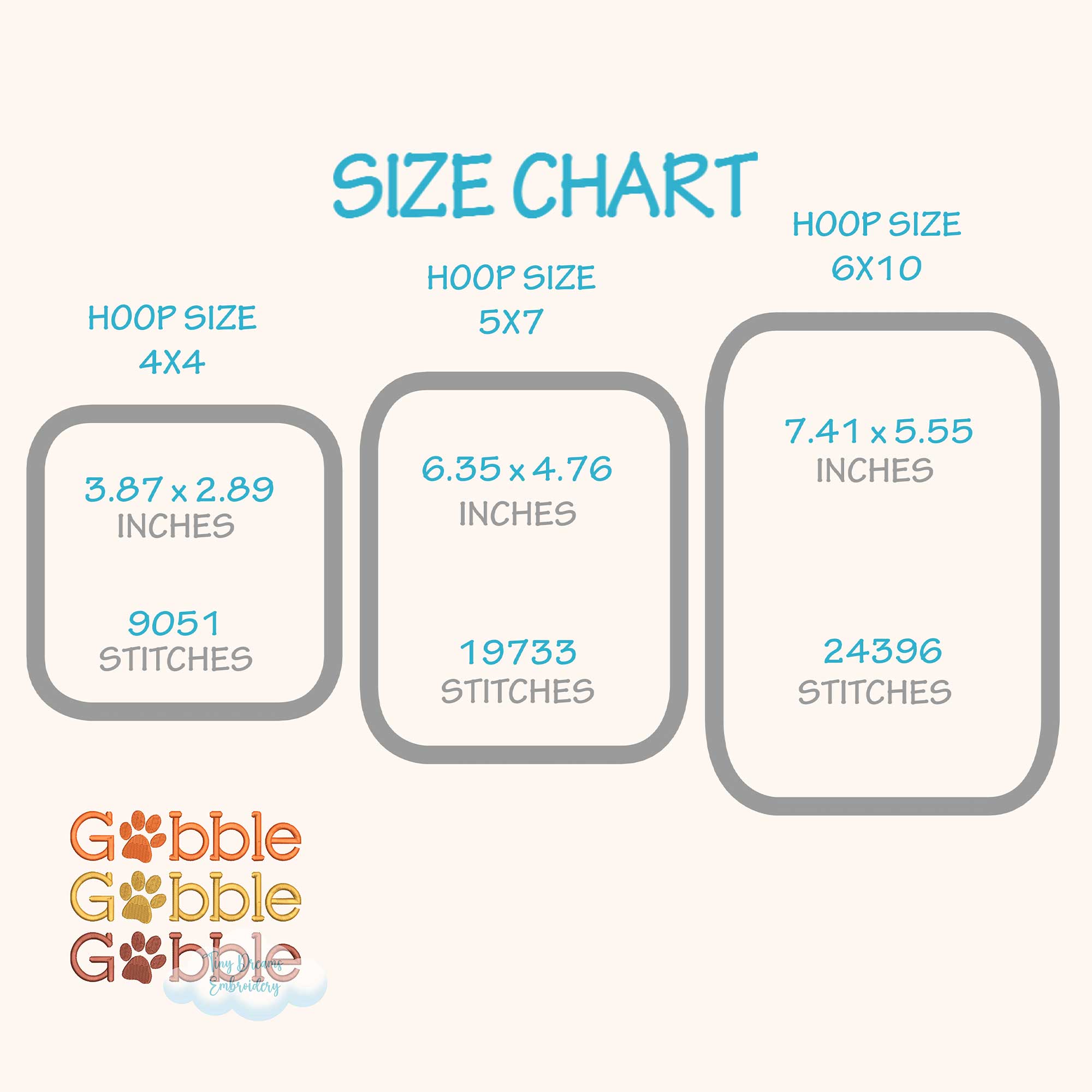 This Gobble Thanksgiving digital machine embroidery design combines a playful turkey with dog paw prints, perfect for festive decor. Celebrate the season of thanks with a fun “Gobble” theme, adding charm to your holiday projects.