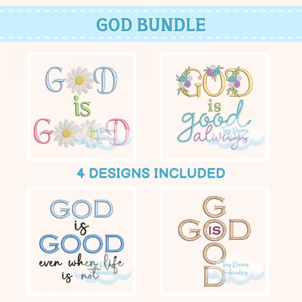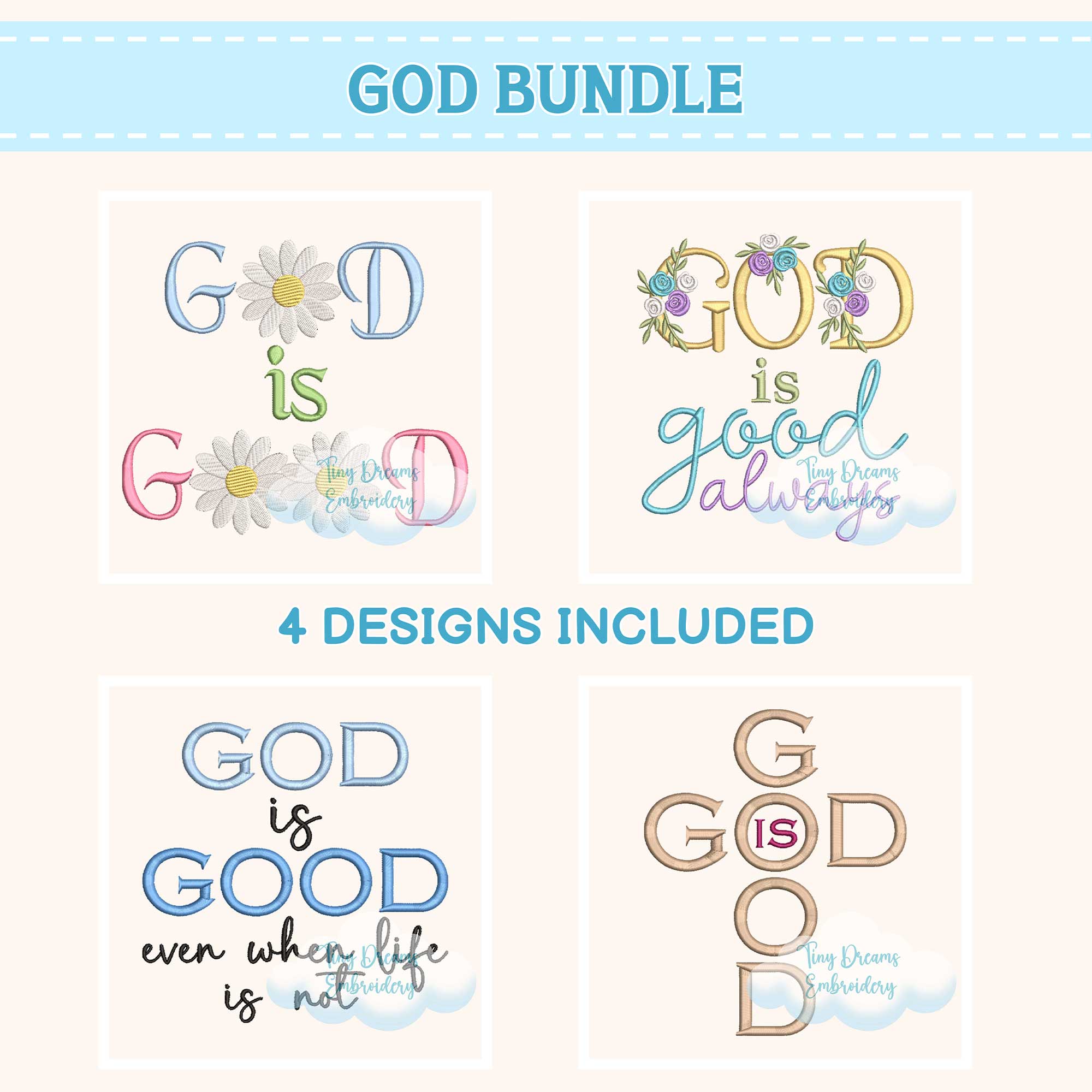 God 4 Designs Bundle Digital Machine Embroidery Design God Good Design Embroidery Daisy Floral Embroidery Design God Cross Embroidery Design