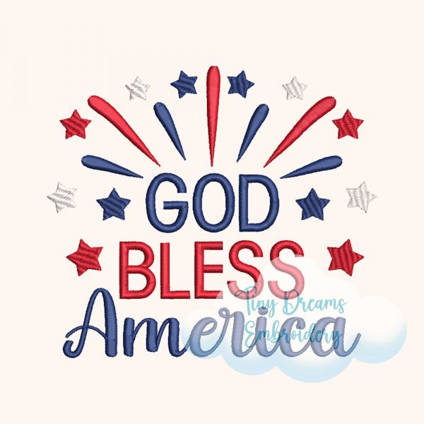God Bless America Digital Machine Embroidery Design American Stars Design Embroidery 4th July Embroidery Independence Day Embroidery Design
