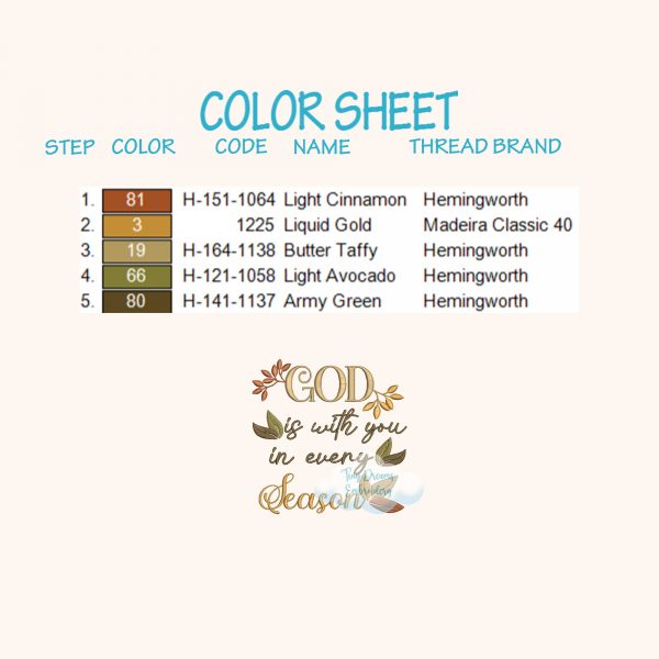 Embrace faith through the seasons with our God Every Season digital machine embroidery designs, featuring autumn leaves and fall motifs. These religious patterns are perfect for adding a spiritual touch to your fall-themed embroidery projects.