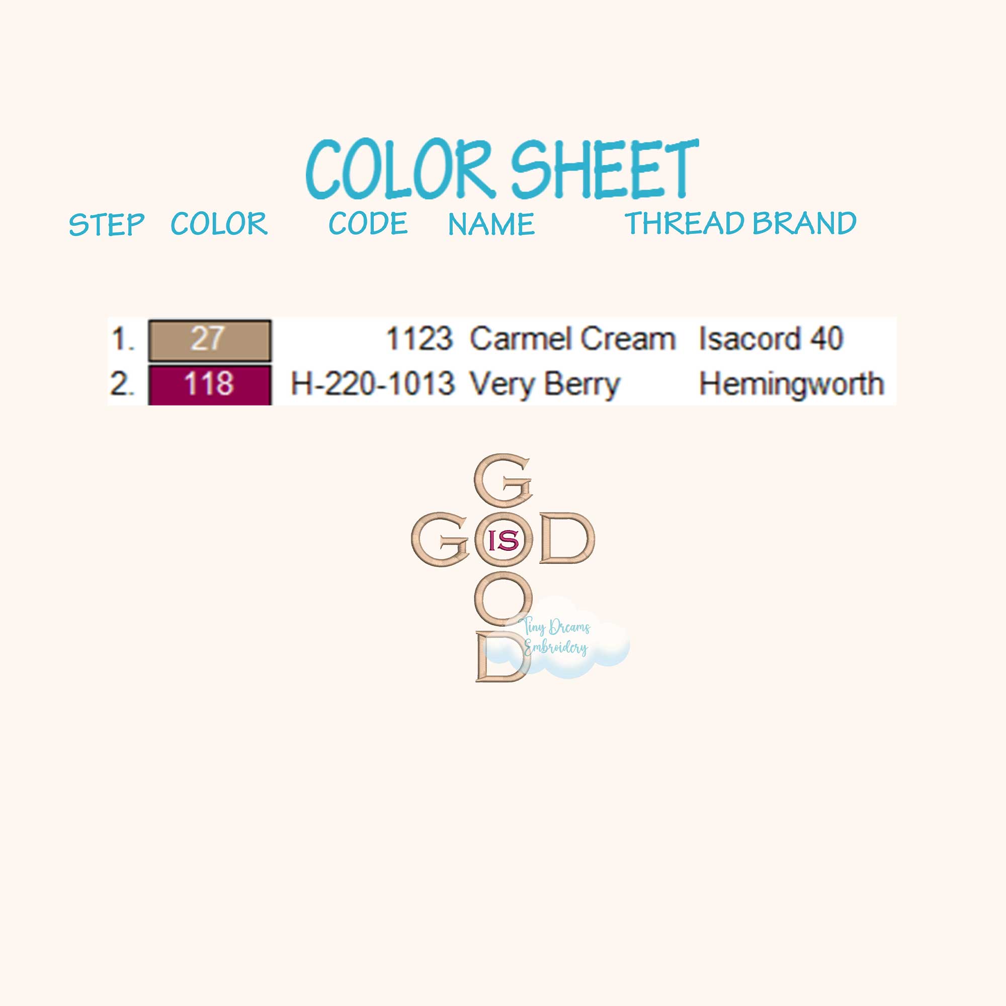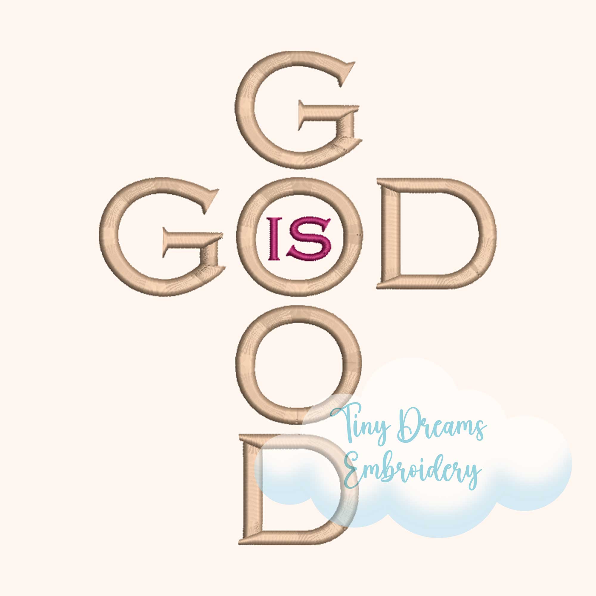 Celebrate faith with this God is Good digital embroidery design featuring a beautiful cross. Perfect for creating meaningful Christian and religious projects.