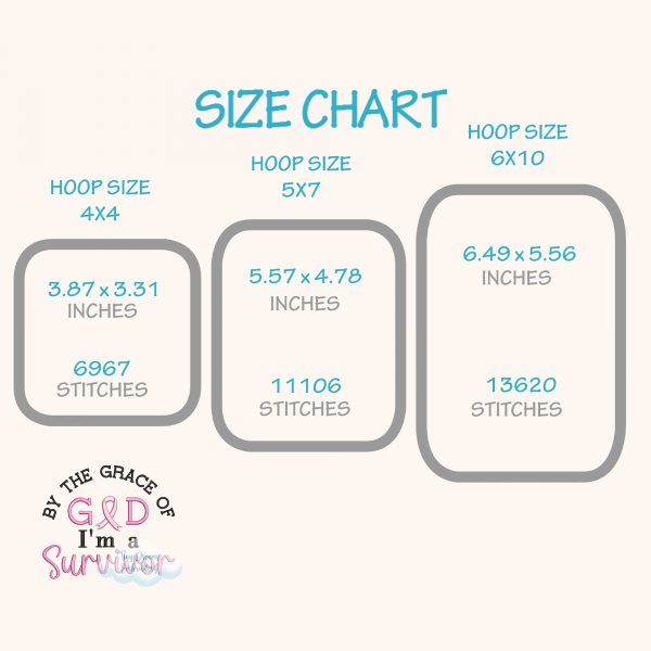 This God’s Grace digital machine embroidery design honors breast cancer survivors with a powerful pink ribbon symbol. Combining faith and strength, it spreads awareness and hope in the ongoing fight against breast cancer.