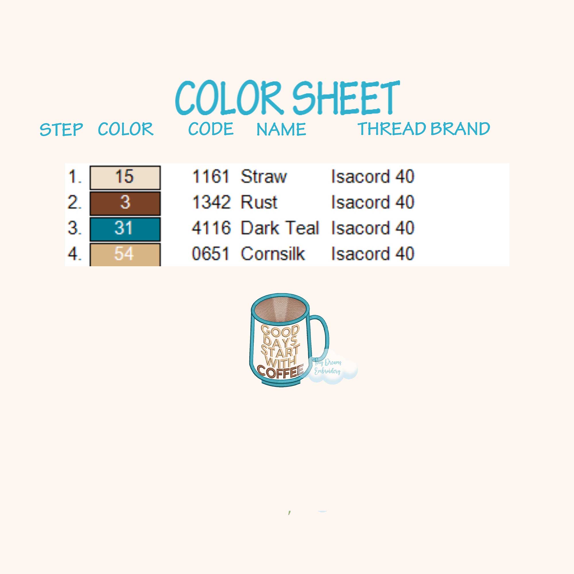 Embrace your love for coffee with this charming digital embroidery design. Featuring a cozy coffee cup and the words ‘Good Day’, it’s the perfect addition to your kitchen decor, especially for cappuccino enthusiasts.