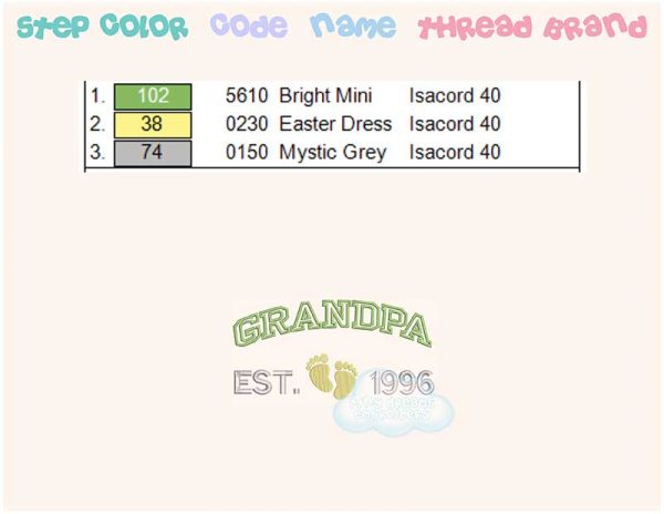 Grandpa established in XXXX embroidery design