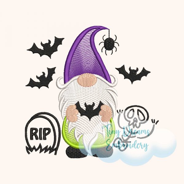 Get ready to spookify your Halloween projects with our Halloween gnome digital machine embroidery design. This jolly gnome is in full Halloween spirit, featuring a spooky skeleton and a bat, making it a fun and eerie addition to your creations.