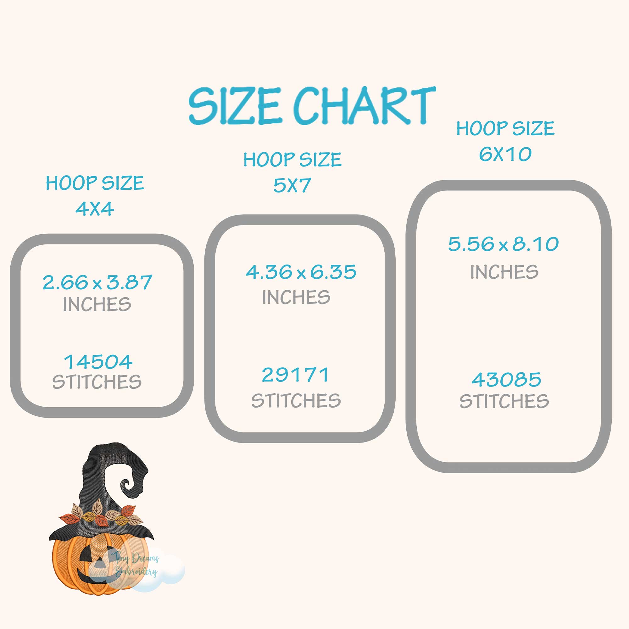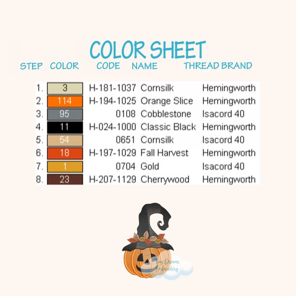 ☁️ The size chart (hoops, sizes and stitches) and color sheet appear on the left side of the image when you click on it.