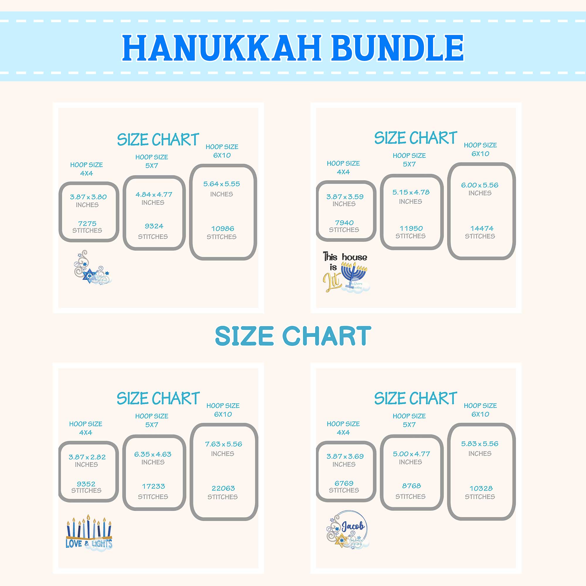 Celebrate the Festival of Lights with this Hanukkah 4 Designs Bundle digital embroidery set. Featuring the Star of David, monogram corners, and festive motifs for personalized projects. 🕎✡️🧵✨