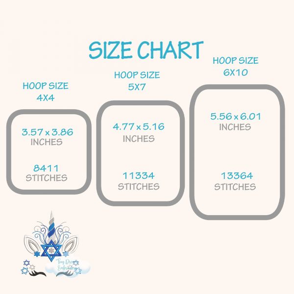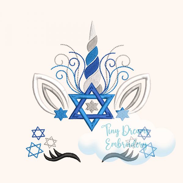Celebrate Hanukkah with our adorable Hanukkah Unicorn Digital Machine Embroidery Design, featuring a baby girl unicorn adorned with the Jewish Star. This cute and festive design brings a whimsical touch to your religious embroidery projects.