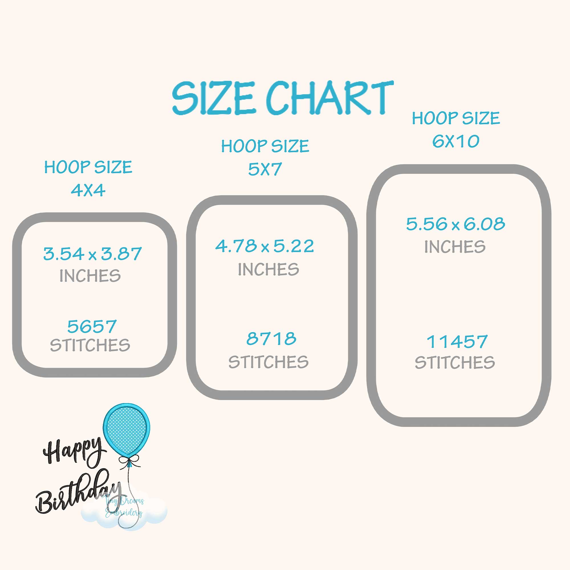 Celebrate in style with this Happy Birthday applique digital embroidery design, featuring festive balloons and cheerful details. Perfect for personalized gifts, decorations, and special birthday embroidery projects.