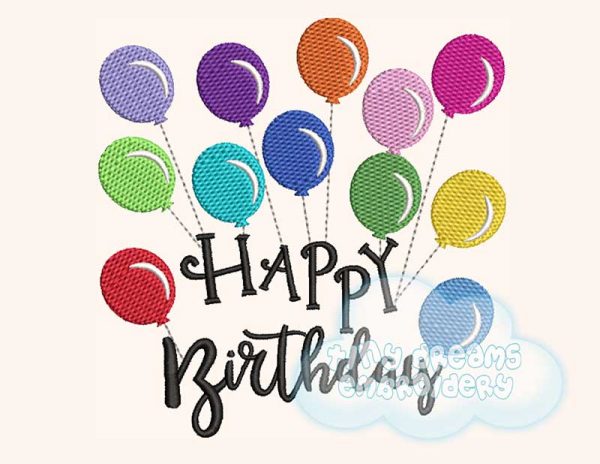 Happy birthday multicolor balloons embroidery design