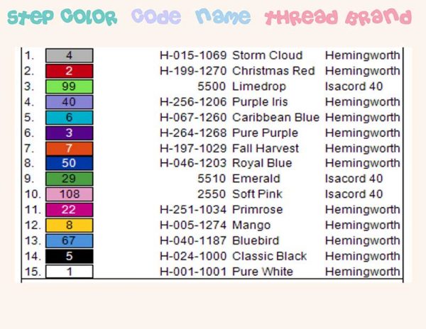 The design comes in the following formats: PES, DST, EXP, HUS, JEF, VIP, VP3, XXX