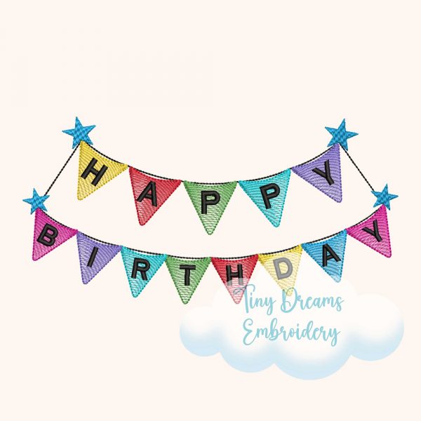 Make any birthday special with our cheerful embroidery design. This delightful garland design is perfect for adding a touch of festivity to your party decorations, whether it’s for a boy or a girl.