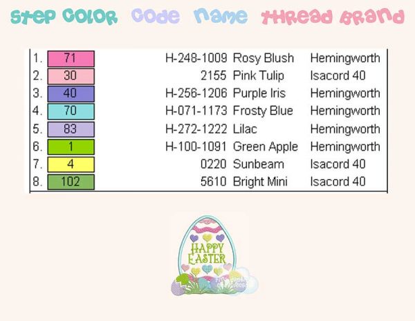 The design comes in the following formats: PES, DST, EXP, HUS, JEF, VIP, VP3, XXX