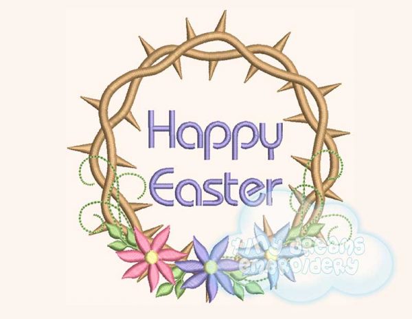 Happy Easter Jesus Crown of thorns with flowers embroidery design