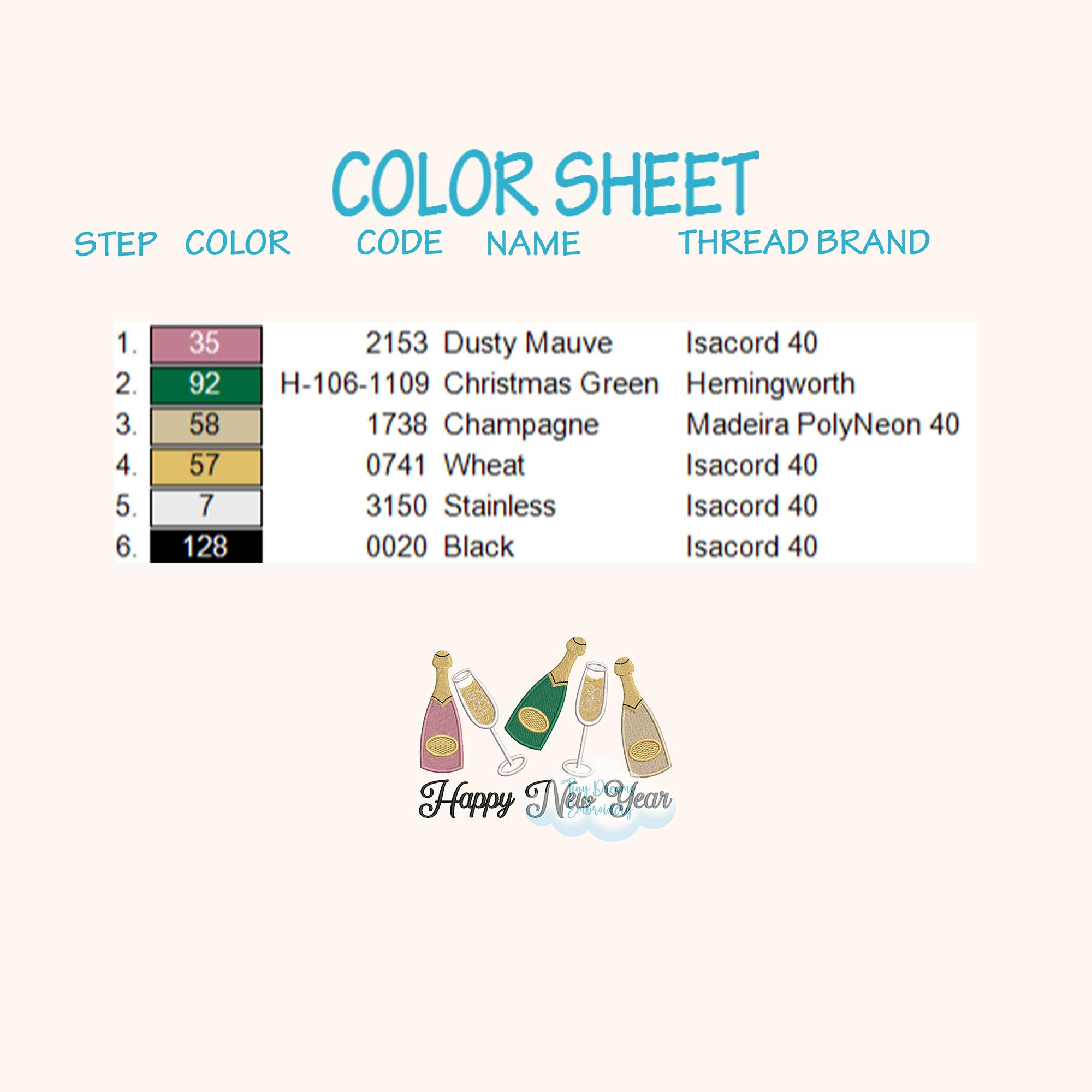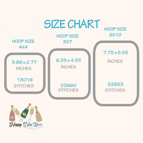 Celebrate in style with this Happy New Year 2026 Embroidery Design, featuring champagne bottles and glasses for a festive toast. Instantly download this machine embroidery design for sparkling New Year’s Eve projects 🍾🥂