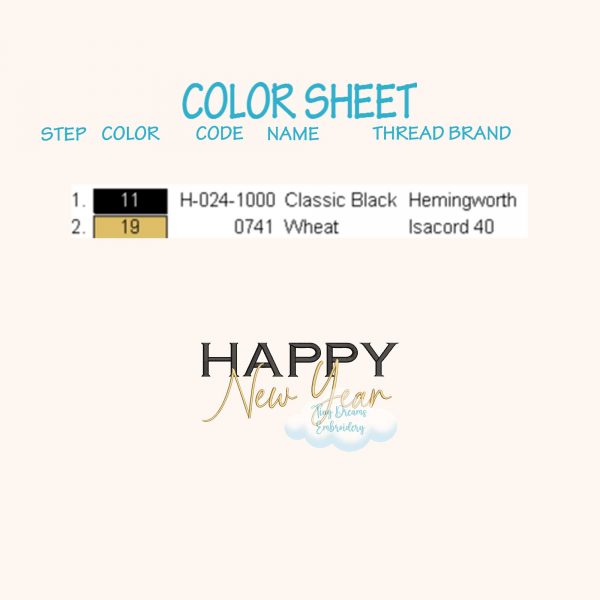 ☁️ The size chart (hoops, sizes and stitches) and color sheet appear on the left side of the image when you click on it.
