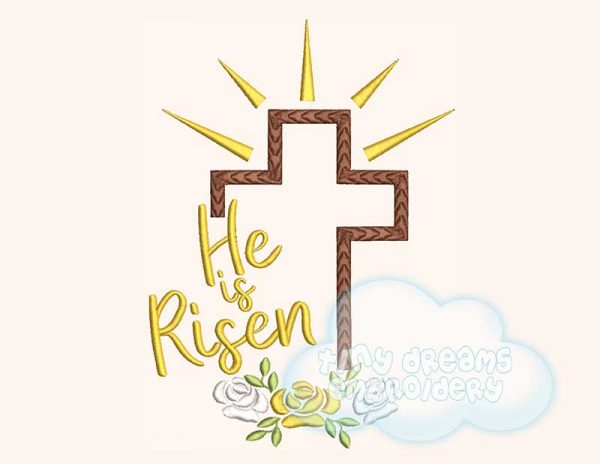 He is risen Easter cross embroidery design