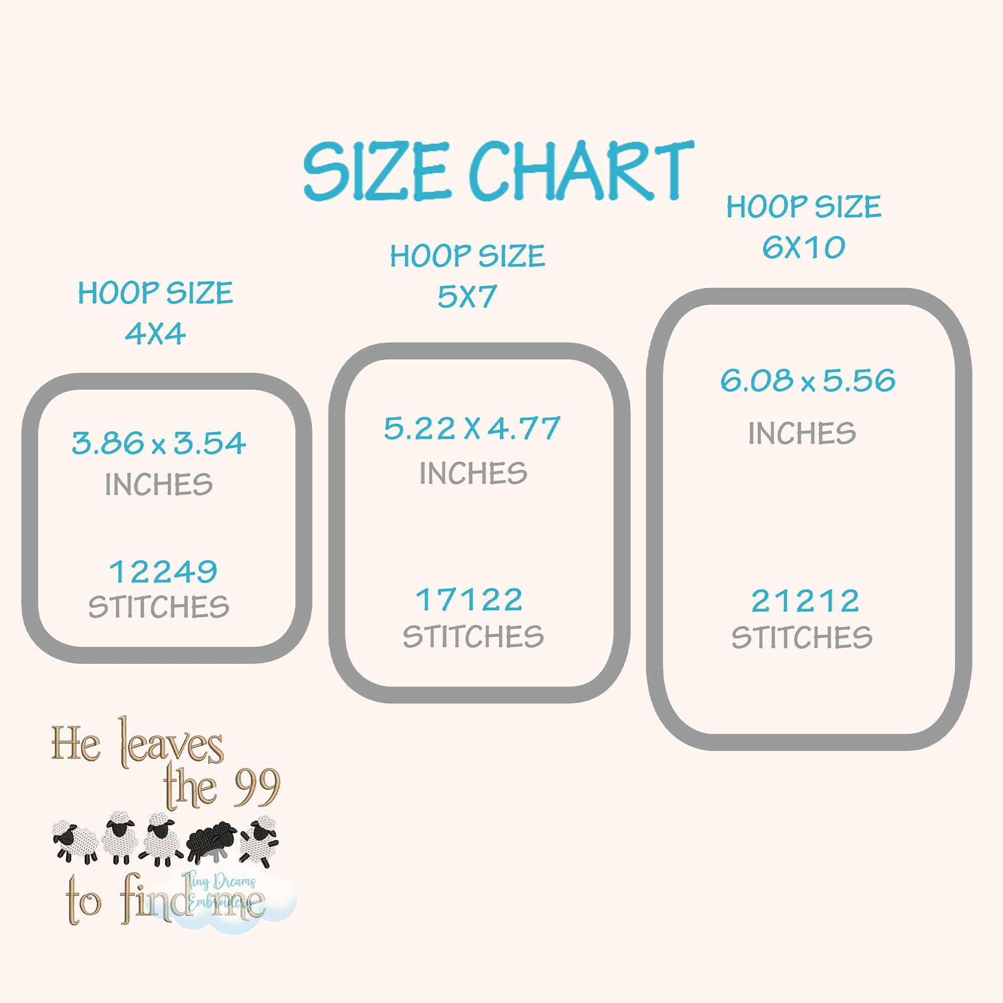 ☁️ The size chart (hoops, sizes and stitches) and color sheet appear on the left side of the image when you click on it.